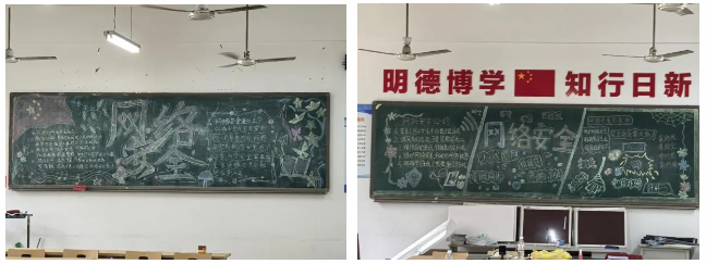 以观影所学为根基,创意创作环节接续展开,其中班级板报设计凭借丰富巧思成为亮点。教学楼走廊里,各班板报组成的“安全长廊” 处处可见观影留下的印记。软件工程班的板报,直接将视频里“网络安全防护” 的相关要点转化为生动呈现。左侧,以鲜艳色彩绘制出网络安全防护的示意元素,边框内清晰罗列着视频重点提及的网络攻击类型等内容;右侧板块,用活泼的卡通形象,把视频里的网络安全防范方法,像如何识别风险、做好个人信息保护等,逐条清晰展现。