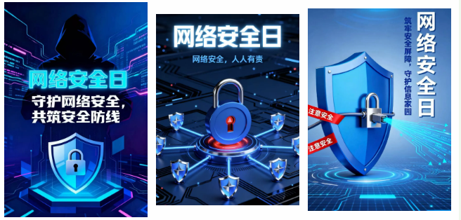 海报创作聚焦视觉冲击力与知识传递的平衡,风格多元且紧扣主题:科技风作品以深蓝为底,用荧光色线条勾勒数据防火墙、加密锁等元素,配文“筑牢安全屏障,守护网络家园”;写实风作品则通过对比手法,一侧刻画用户泄露信息后的焦虑场景,另一侧展现正确防护后的安心状态,辅以 “谨慎点选,安全相伴” 的醒目标语,让观众直观理解网络安全的重要性,每一处色彩搭配与元素设计都源自观影时的重点记忆。