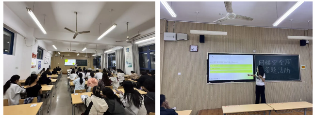 知识竞赛环节则为活动注入竞技活力,赛程分为必答、抢答与案例实操三部分:必答题围绕观影视频中的基础知识点设置,如网络安全法核心条款、常见病毒类型等,检验同学们的知识扎实度;抢答题则侧重时效性内容,涵盖最新诈骗套路、新型防护技术等,考验反应速度与知识储备;案例实操环节中,评委给出模拟的“陌生链接点击”“可疑文件接收” 等场景,选手需现场分析风险点并给出应对方案,现场掌声与讨论声交织,让网络安全知识在互动比拼中真正内化于心。